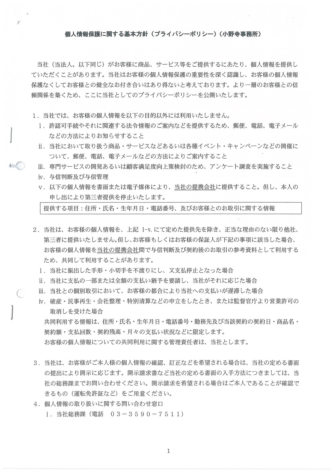個人情報保護に関する基本方針(プライバシーポリシー)